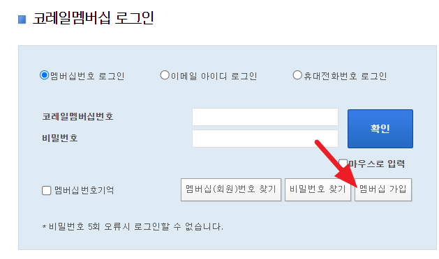 해당 사이트에서 '멤버십 가입'을 클릭해주세요