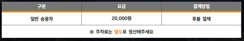 주차가 가능한 차종은 차량 높이 2미터 이하로 제한되어있기 때문에 미니버스나 화물차 등 대형차량의 경우 입차가 불가한 점 참고하시기 바랍니다.