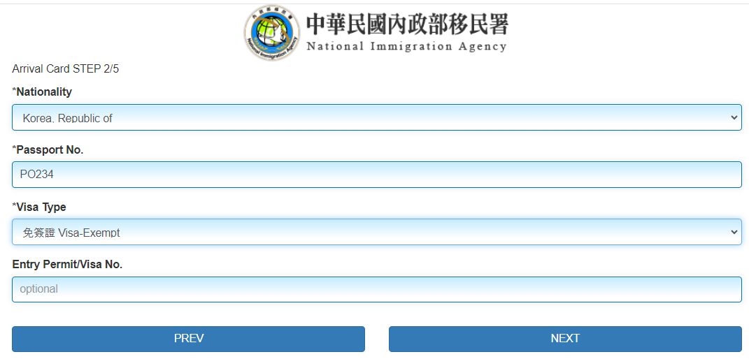 - Expect Arrival Filght/Vessel No. : 대만 입국시 비행기 편명 (항공권 확인하기)