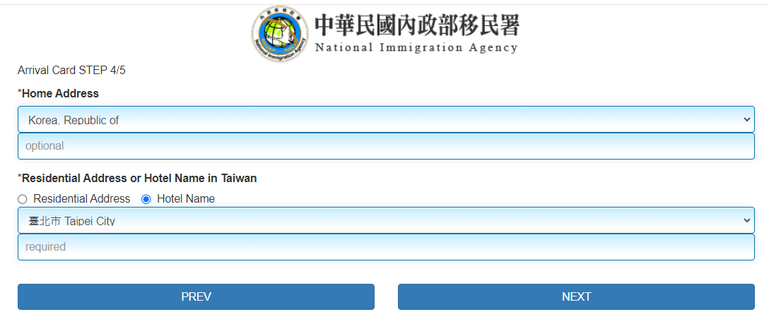 - Residential Address or Hotel Name in Taiwan : 대만에서 머물 숙소 정보 영문으로 입력하기