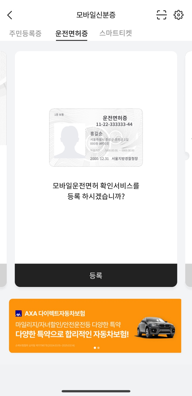 기존 플라스틱 카드와 같은 형태의 운전면허증을 대신하여 갖고다니면서 경찰 검문이나 금융거래 등 업무를 할 때 신분증으로도 사용할 수 있습니다.