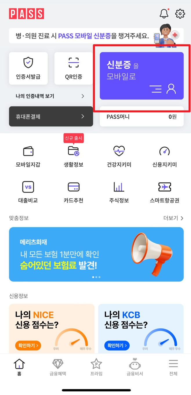 정부에서 제공하는 모바일 신분증 앱 없이도 평소에 자주사용하는 PASS를 통해 모바일 운전면허증을 사용할 수 있습니다.