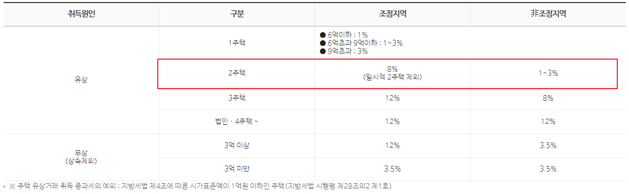 2주택자 취득세율