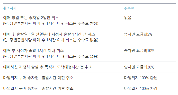 또한 예매 내용은 취소 시기에 따라 수수료가 나옵니다. 따라서 해당 수수료 기간을 참고해 주시기 바랍니다.