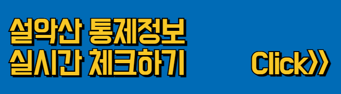1970년도 국립공원에 지정된 설악산은 1,708m 높이, 면적은 393.50km2에 다다릅니다. 멋진 설악산 외 다른 국립공원의 실시간 모습을 보고싶은 분들은 아래 버튼을 통해 만나볼 수 있습니다.