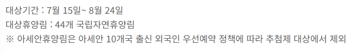 산과 바다에 위치해있는 숙박 등은 매우 비용이 높기 때문에 가족단위로 여행하기에 부담이 됩니다. 다만 숲나들e 국립자연휴양림을 예약에 성공했다면 저렴하기도 하고 쾌적하게 많은 가족 구성원이어도 큰 부담없이 즐겁게 떠나볼 수 있습니다. 요즘은 선착순으로 예약도 가능하지만 추첨제도 이용할 수 있습니다.