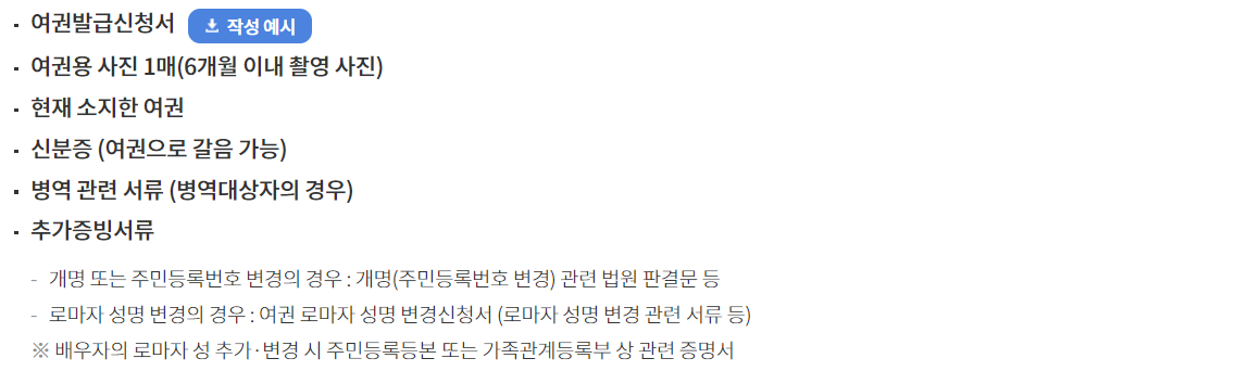 여권 정보 변경 및 정정에 따른 재발급 준비물