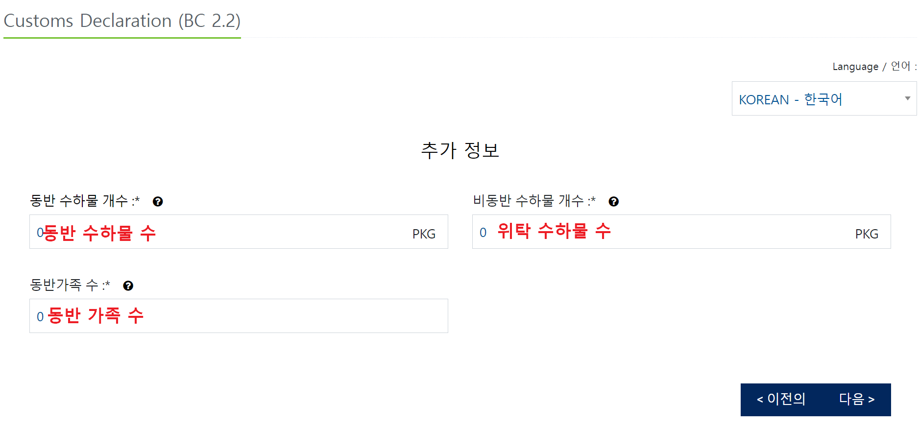 수하물 및 동반가족 정보 입력하기