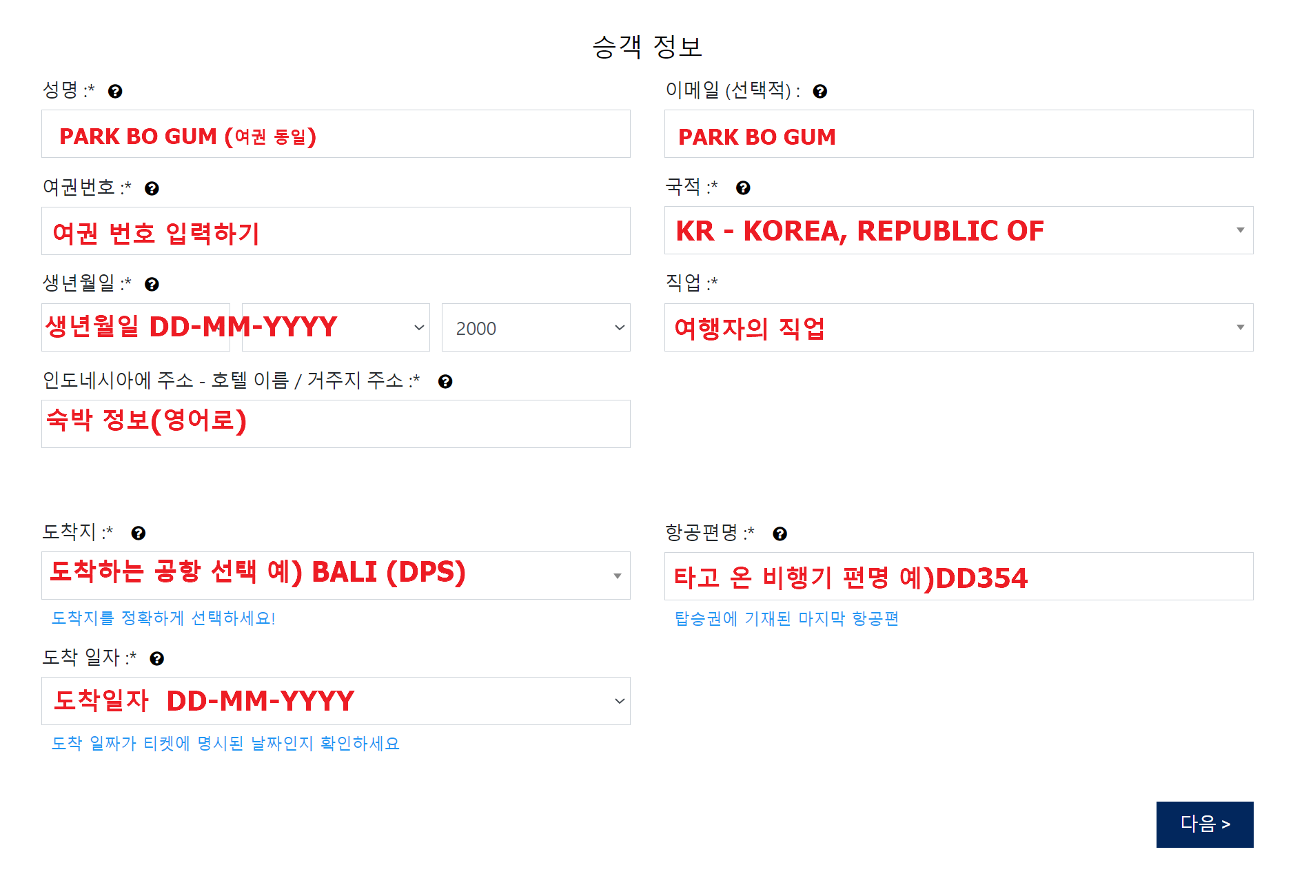 인도네시아 전자세관 신고서는 여행자의 정보 뿐 아니라 항공기 정보 등 입력할 것 이 많은데요, 모두 한글로 되어있어 입력하기가 쉽고 크게 어렵지 않습니다.