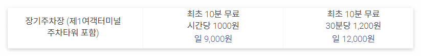 또한 단기주차장은 승용차 전용으로 차량 제한 높이가 2.1m 이하입니다. 좀 더 장기주차장이 저렴한대신 임시 주차장과 외곽 주차장도 포함되는 점 체크 후 이용하시길 바랍니다.