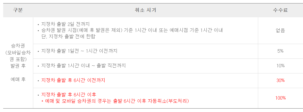 인천터미널 시외버스 취소 수수료 안내