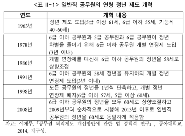 이에 따라 아래와 같이 공무원에게 이러한 정년연장 제도에 대한 점차적인 개혁을 추진해왔습니다.