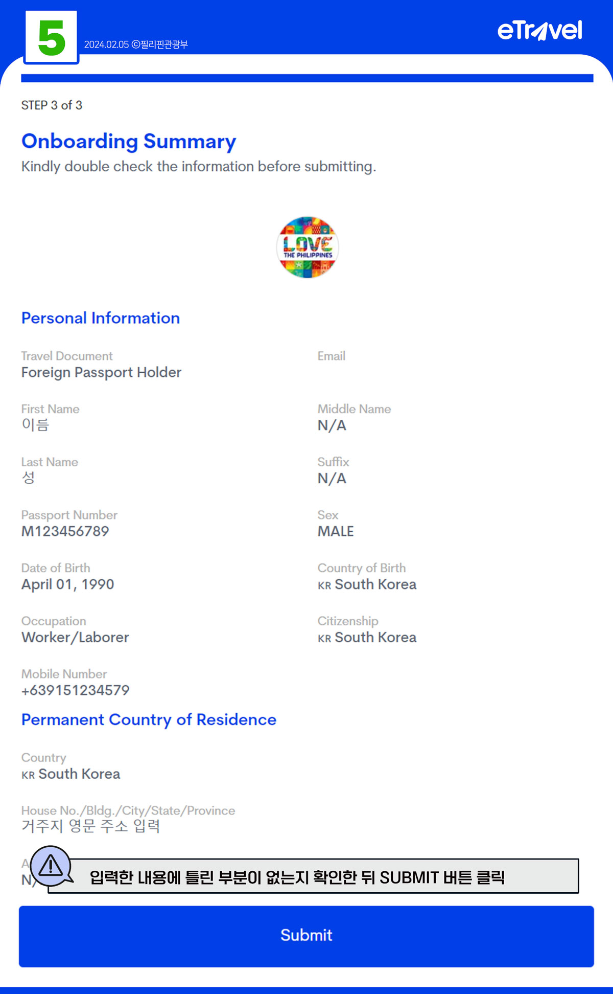 e트래블 사이트는 필리핀 정부가 입국자의 건강 상태와 기본 정보를 미리 확인하기 위해 마련된 것으로, 필리핀 입국 시 반드시 제출해야 합니다.