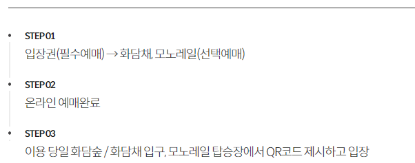 화담숲 홈페이지에서는 화담숲 예매를 하고 들어갈 수 밖에 없습니다. 현장에서는 예약하기가 어렵기 때문입니다. 그만큼 인기있는 화담숲을 이용하기 위해서는 입장권을 예매할 때 내가 화담채나 모노레일을 이용할지도 선택할 수 있습니다.