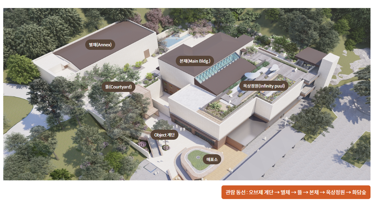 화담숲의 사랑채인 화담채는 독립된 건물로 첫번째 테마원이라는 컨셉이 담긴 장소라고 생각하시면 됩니다. 전시관은 아래와 같이 구성되어있으며, 매표소에서 QR코드를 제시해야 입장할 수 있습니다.