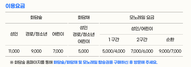 아래 화담숲 입장료는 7월 이용시 적용되는 것으로 이미지를 클릭하면 공지사항으로 바로 이동합니다.